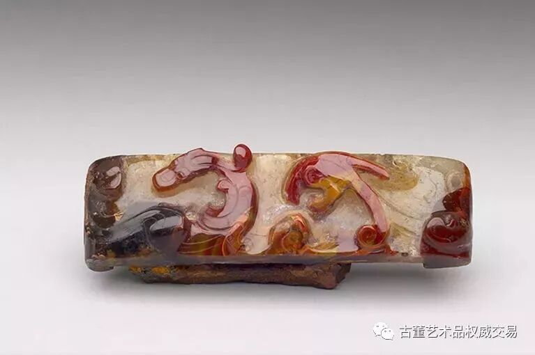 戰(zhàn)國(guó)和漢代玉器各以蛇、獸為原型,採(cǎi)用了不同的技巧,但都完美以錯(cuò)視的效果,達(dá)到動(dòng)態(tài)錯(cuò)覺(jué)。 這與現(xiàn)代攝影中以極短時(shí)距重復(fù)曝光所拍到的連續(xù)動(dòng)作,即「頻閃運(yùn)動(dòng)」,有異曲同工之處。 觀者視覺(jué)在觀看此類作品時(shí)能自動(dòng)將不同方向的頭部和四肢相配合,從而產(chǎn)生富有動(dòng)感及速度感的錯(cuò)覺(jué)。