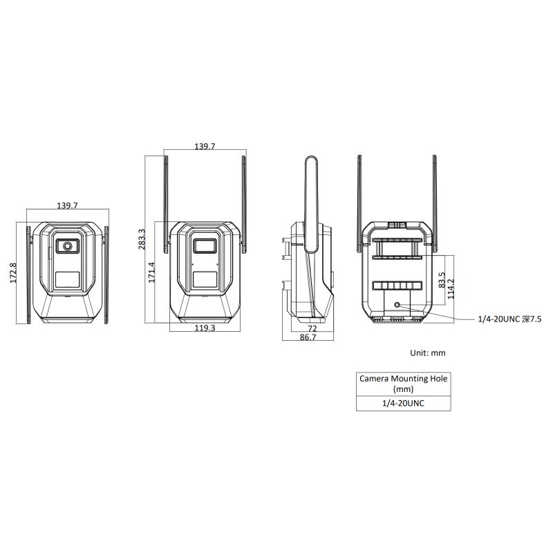 DS-2XS6C45F-IWGM/C1 ?低400萬(wàn)動(dòng)物保護(hù)專用紅外攝像機(jī) 功能特性: 維護(hù)管理:支持通訊流量、電池電量、充電狀態(tài)上報(bào) 接口功能:內(nèi)置麥克風(fēng)高清拾音,支持256 GB MicroSD/MicroSDHC/MicroSDXC卡本地存儲(chǔ) 續(xù)航能力:抓圖數(shù)量≥5000張 或者 工作時(shí)間≥3個(gè)月(取先滿足者) 采用高效陣列紅外燈,使用壽命長(zhǎng),紅外照射距離最遠(yuǎn)可達(dá)15 m 采用工業(yè)級(jí)400萬(wàn)傳感器,物理分辨率2688 × 1520,增強(qiáng)夜視,照度0.001 Lux 高可靠性:符合IP67防塵防水設(shè)計(jì) 安裝調(diào)試:支持通過(guò)云帆app進(jìn)行快速配參、實(shí)時(shí)預(yù)覽、影像及狀態(tài)查閱 對(duì)接協(xié)議:支持ISUP5.0、螢石協(xié)議接入 高靈敏度被動(dòng)紅外(PIR)探測(cè)器,準(zhǔn)確檢測(cè)動(dòng)物,實(shí)現(xiàn)高清圖像采集和短視頻錄制 通訊方式:支持全網(wǎng)4G無(wú)線網(wǎng)絡(luò)傳輸,支持700M專網(wǎng)傳輸,支持Wi-Fi本地調(diào)試 DS-2XS6C45F-IWGM/C1 ?低400萬(wàn)動(dòng)物保護(hù)專用紅外攝像機(jī) 規(guī)格參數(shù): 攝像機(jī) P/N制P制,N制 慢快門支持 日夜切換模式ICR紅外濾片式 鏡頭 鏡頭尺寸接口M12 補(bǔ)光 波長(zhǎng)范圍850 nm 防補(bǔ)光過(guò)曝支持 音頻 音頻效果類型單聲道 音頻環(huán)境噪聲過(guò)濾支持 網(wǎng)絡(luò) 用戶管理最多32個(gè)用戶,可分3級(jí)用戶權(quán)限管理:管理員,操作員,普通用戶 圖像 smartIR支持防補(bǔ)光過(guò)曝開啟和關(guān)閉,開啟下支持自動(dòng)和手動(dòng),手動(dòng)支持根據(jù)距離等級(jí)控制補(bǔ)光燈亮度 圖像參數(shù)切換支持 信噪比≥ 52 dB 一般規(guī)范 文件系統(tǒng)雙備份支持 在線升級(jí)支持 認(rèn)證 國(guó)內(nèi)常規(guī)認(rèn)證型檢,GB28181 輻射等級(jí)Class B DS-2XS6C45F-IWGM/C1 海康威視400萬(wàn)動(dòng)物保護(hù)專用紅外攝像機(jī) 產(chǎn)品尺寸: